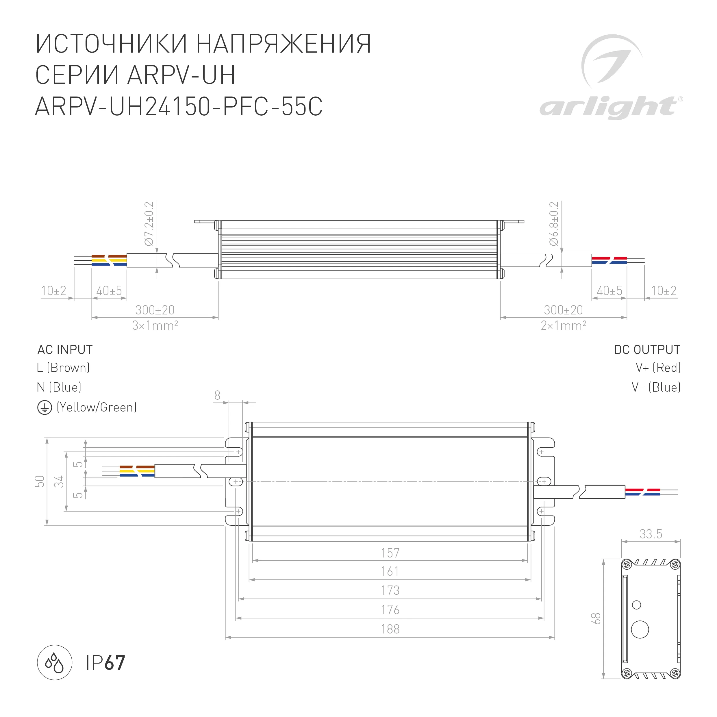 В магазине Arled Market Вы можете купить "Блок питания ARPV-UH24150-PFC-55C (24V, 6.3A, 150W) (Arlight, IP67 Металл, 5 лет)"