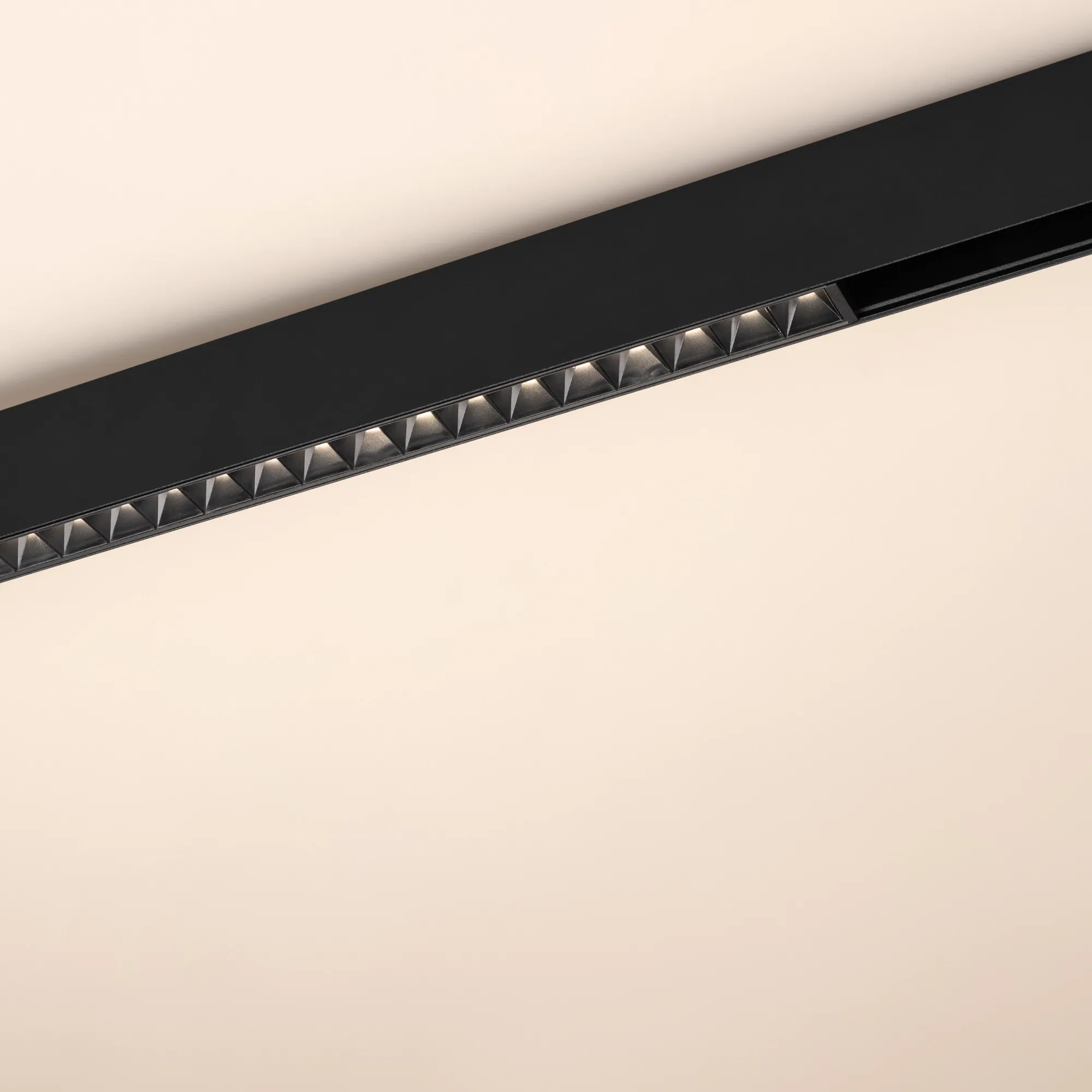 Светильник для магнитных треков MAG-ORIENT шириной 26 мм с управлением DALI. Мощность 16 Вт, св. поток 870 лм, 54 лм/Вт, теплый 3000 K, CRI>90, угол 24°, напряжение питания 48 В. Черный прямоугольный корпус из металл, экран поликарбонат, степень защиты IP20. Размер: длина 462 мм, ширина 22 мм, высота 42 мм. Монтаж на трек MAG-ORIENT. Пульсация <1%.