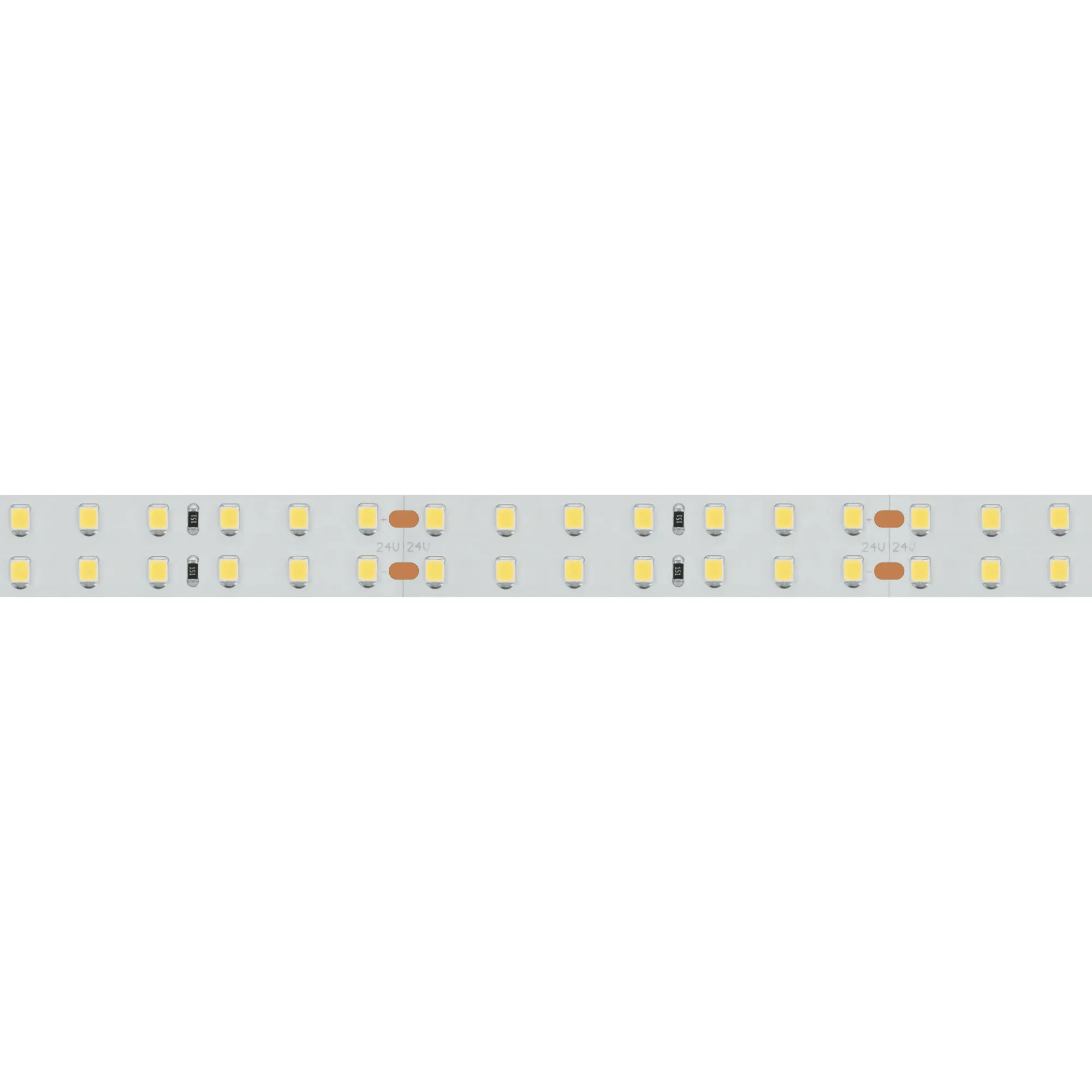 Гибкая лента LUX, светодиоды smd 2835, 196 шт/м (980шт на 5м), белая плата 15 мм, скотч 3М. Цвет ТЁПЛЫЙ 2600-2800K. Питание 24V, мощность 20 Вт/м (100 Вт на 5м), угол 120°, цветопередача CRI>85. Размеры 5000х15x1.5мм. Мин.отрезок 71.43мм, 14 светодиодов. Цена за 1м.