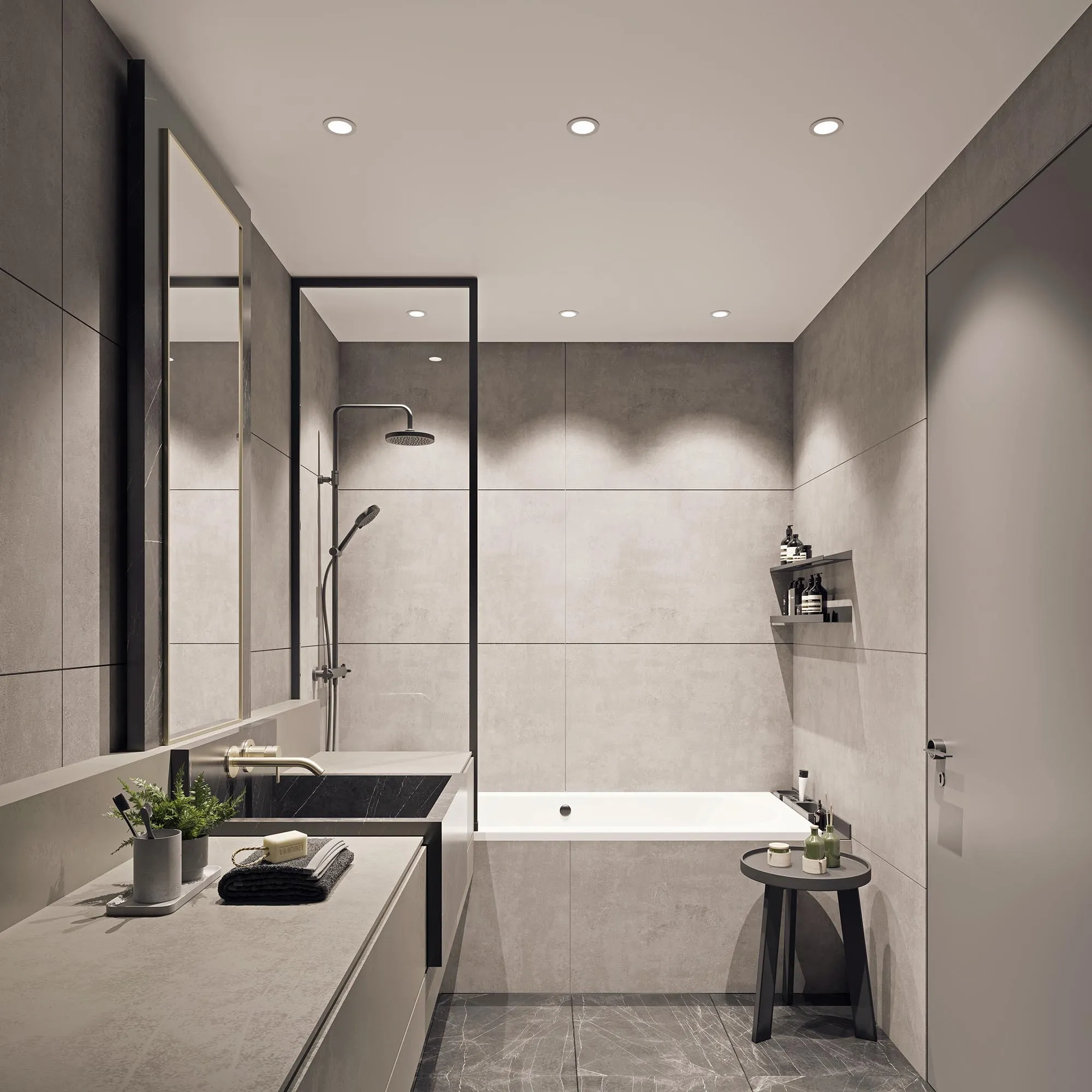 Встраиваемый светильник даунлайт. Мощность 10 Вт, св. поток 910 лм, 90 лм/Вт, дневной 4000 K, CRI>90, угол 36°, напряжение питания 230 В. Чёрный круглый корпус из алюминия, экран PMMA, степень защиты IP54. Размер: диаметр 86 мм, высота 80 мм. Монтаж встраиваемый, установочное отверстие: диаметр 80 мм. Драйвер IP54, 20-40 В, 250 мА, пульсация <1%.